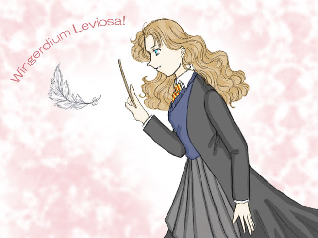 ハーマイオニー大好きです(笑) がんばり屋さんで、時に相手に誠実を求めすぎるところがかわいい(笑) ・・・しかし、この絵、どう見ても左肩が脱臼しています; 『ウィンガーディアム・レヴィオーサ』のつづりなんて、知らないね。(開き直るな;)