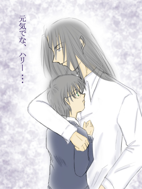 | 『ハリーポッターと不死鳥の騎士団・下巻』P167より。 ハリーとシリウスの別れのシーンです。 あえて、『シリウスおじさん』を若く描いたところ、フリーターの兄さんと女子中学生のような、やばい構図になってしまったことを、心よりお詫び申し上げまする;;; って、もう高校生くらいですか、ハリー・・・・・・。 幼くしすぎてすみませっ・・・・・・!!!(倒) 何しろ、『賢者の石』のDVDを見ながら描いたものですから(^^;) それにしてもブラック家、私的お気に入りキャラを、たくさん輩出してくれています! 今、ベラトリックス・レストレンジやフィニアス・ナイジェラスが描きたくてたまりませんv |