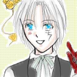 D.Gray−man4コマでス。 あぁ・・・(T▽T) 初めて読んでから、まだ一週間も経っていないのに、なんでこんなにはまっているのやら(T▽T) 一日一枚の勢いで絵板に描き続けたアレンを見ていて、ふとこの4コマを思いつきまして。 画質を揃えるため、神田も絵板で二枚描いてアップです(^^;) ・・・・・・お目汚し申し訳ありませぬ;;; |