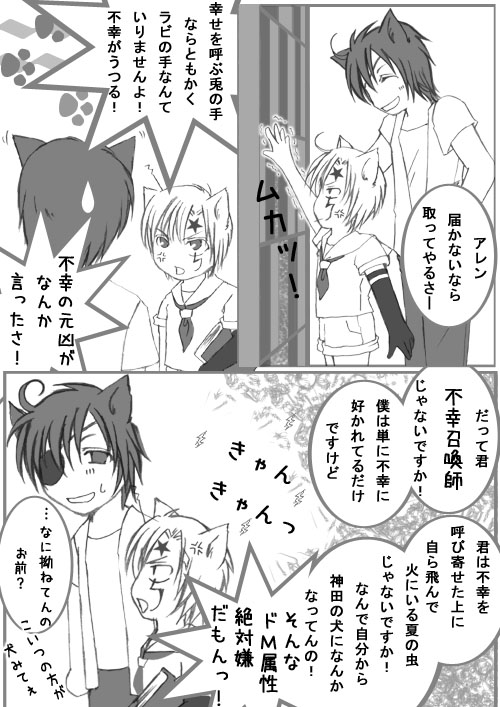 下僕(笑)のラビをあっさり神田さんに取られて不機嫌なアレンさんです。