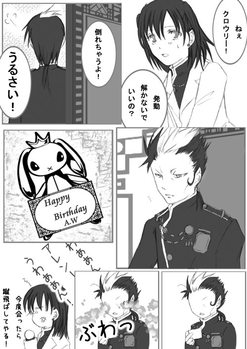 心配してるのに聞いてくれないクロちゃんや、こっそり戻って来て誕生日プレゼントだけ置いて去ってるアレン君にお怒りのリナリーがメインと言っても過言ではないのだ。←
