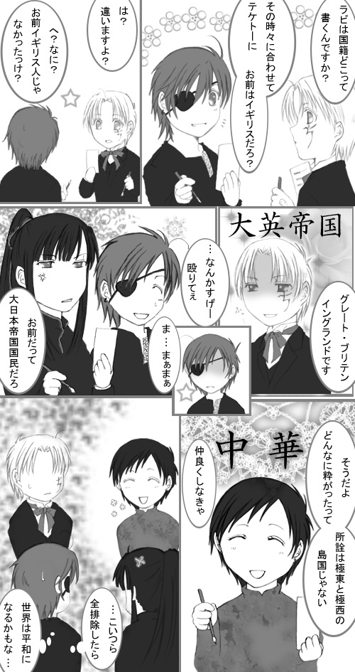 | 冗談だと思うでしょう?(笑) でも実際、英国人に『イギリスの方ですか?』と聞いたら、すっごい訝しげな顔されて、『いいえ?グレート・ブリテン(イングランド)です』と言われます。 少なくとも10年くらい前はそうでした(笑) ちなみに中華人民共和国の『中華』とは、『世界の中心』という意味。 四千年前から世界の中心。 ちなみに、新団服描こうと思ったんですが、めんどくさかっ・・・いやいや、練習する時間がなかったので私服になりました・・・; |