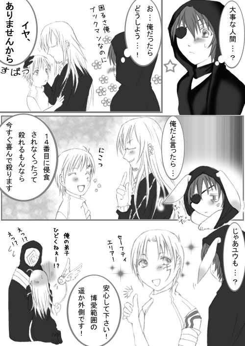自意識過剰のラビと鬼畜なアレン君、さびしんぼの師匠が描いてて楽しかったです(笑)