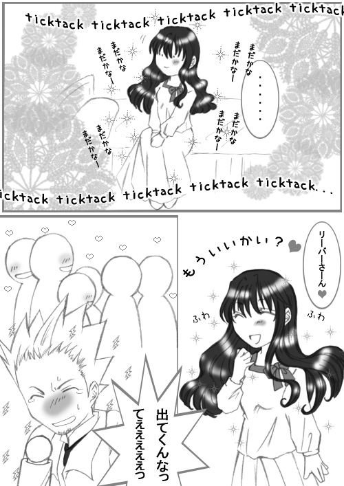星野様長期休載のため、早期ご復活を願って休載救済漫画でございます ミランダさんが髪を伸ばしたら、どんなに可愛かろうかと思って描いてみました(笑) なんで今のミランダさんは髪を伸ばしてないかって、おそらく、長いと暖炉やコンロやオーブンが危険物と化すからですよ! むしろ、既に焦がして切らざるを得なかった経験者ですよ!←見たことあり。 それにしても班長、ただでさえ忙しいのにミランダさん防衛まで大変ったらありゃしないですね! 最後のミランダさん、どうにも確信犯的ですみません(笑) |