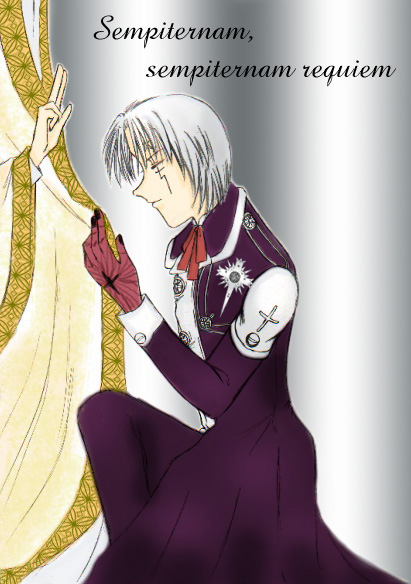 | 昨日、突然気づいたのです。 『あ、D.グレって、カトリックなんだ』って。(散々神父だのヴァチカンだの言ってたくせに・・・) 黒の教団の出資がヴァチカンで、法王直属であるのなら、もしかしたら、エクソシスト任命式なんかあって、その際は法王の祝福を受けるのかしら、と思って、描いてみました。 そして、出来上がってから、『持つのは裾じゃないか・・・?』と気づいたり・・・;;; なんでこんな襟先をもっとんのじゃ;; 猊下の法衣の裾にキスする儀礼って・・・ありました・・・よね・・・?(すっごい自信なし;;;) |