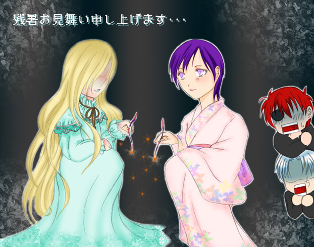 浴衣のリナはともかく、一緒にいるのがオバケ嬢って、究極欲しくない残暑見舞いですよ!(笑)