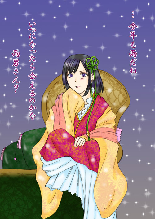 近年、あまりにも七夕が雨ばかりだったので、不機嫌な姫を描きたかったのですよ(笑)