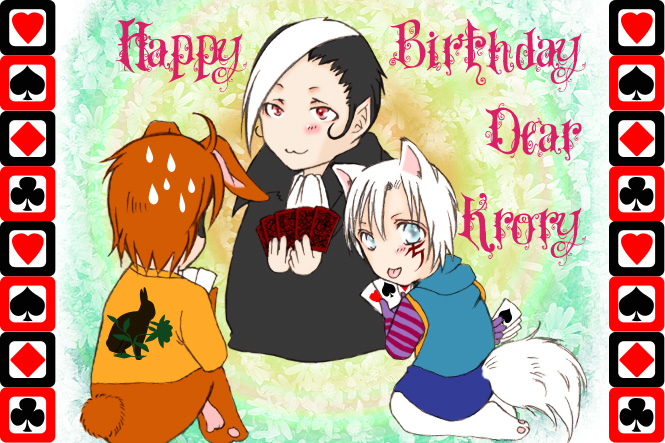 2012年クロちゃんお誕生会TOPでした! SSははじめ、クロちゃんとアレン君たちが仲良くカードゲーム、って展開にしようと思っていたのでこんなイラストが出来上がったのですが、内容が全く違うものになりました(笑) まぁ、こんなほのぼのしい絵もイイヨネ! イメージは『いかさま師』ですけど。>そういう絵画があるんですよ(笑)