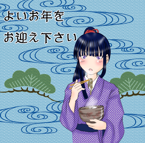 かいんさんが誕生日プレゼントでくれた和物素材集のおかげで、背景は沙綾形(さやがた)と観世水、松でおめでたく出来ました(^^)
