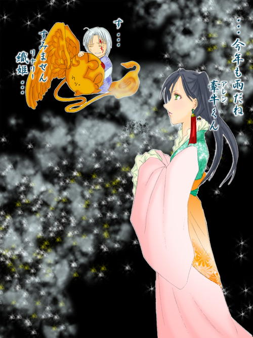 雨男の牽牛と、○年越しのお付き合いでややお怒りな織姫、というシチュで(笑)