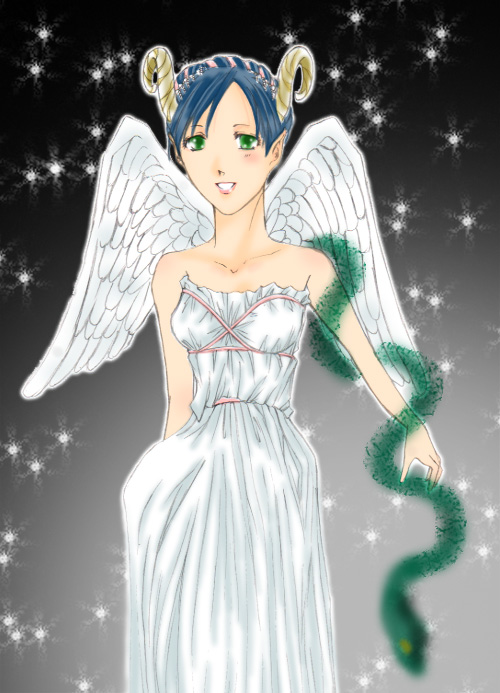 悪魔の女王・リリスの仮装をしたリナリー。 おまけで、作中には書いていなかった蛇もオプションです(笑) 本当は長い髪をたらさなきゃいけないのですが、コムイ兄さんによって編まれました(笑)