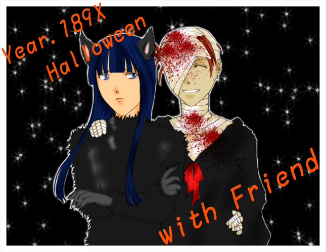 猫耳じゃないから!!(笑)←かいんさんに言われました(笑) 狼男神田と(当初)ミイラ男、(結果)血みどろ包帯男のラビです♪ 本編では絶対に見られないであろう、フレンドリーな二人。 記念写真撮影後、あまりに馴れ馴れしかったラビは、なます切りにされたことでしょう。(をい)