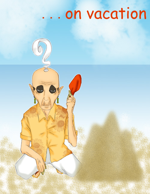 仕事帰りに海水浴帰りの子供を見て、ちびラビと砂遊びするジジィが描きたいなぁと、思ったのでした(笑)