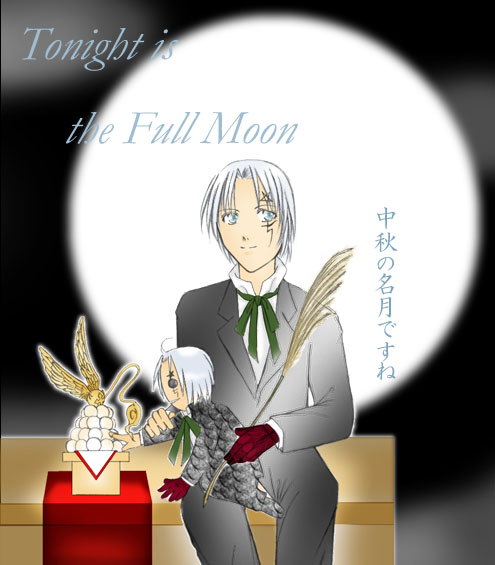 大奥を見ながら下書きを描いていたせいか、アレン君、にっこり笑って月を見つつも、手はお団子に手を伸ばすハニアレンを阻んでいます(笑)