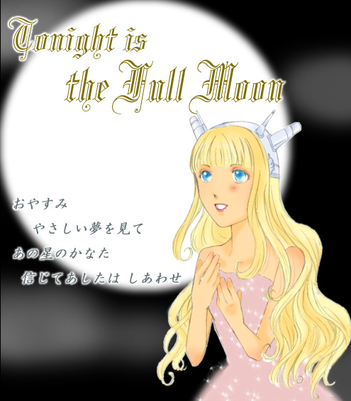 | 今月の満月を誰にしようか考えていたんですよ。 とりあえず別のことをしながら、D.グレアニメのDVDを焼いていたら、愛らしいお嬢さんがいるじゃないですか! そういや私、ララは絵板で落書きしたくらいで、まともに描いてないなぁと思い、今月の満月絵です♪ 歌は、ちょうどその日見に行ったミュージカル『MA』の、『流れ星のかなた』です★(製作発表レポートページの最後尾に視聴リンクあります) 本当は、『だからおやすみ 優しい夢を見て』なんですけどね(^^;) 文字数の関係で削除★ |