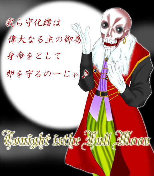 | 我らが伯爵様 かいんさんに、『今を逃したら、守化縷ちゃんを描く機会はなくなるよ!』と指摘され、今月の満月(しかも皆既月食!)を飾ることとなりました 『狂骨の夢』(京極夏彦)だったか、『骨の妖怪は楽しげに骨を鳴らして歌う』という話を思い出したので、ちょっと楽しげに歌わせてみましたよ(笑) 原作の守化縷ちゃんに比べて、丸みがないのでいまいち可愛さが物足りないです。 体型だけでも、もっと丸くすれば良かった;; でも服の色は、こんな原色系で良くないですかー(笑) おもちゃの兵隊さんっぽく塗ってみましたよ!可愛いでしょ!!(笑)←自画自賛。 |