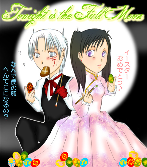 | 翌日がイースターということで、イースターエッグ作成中の二人でした。 リナの髪が長いのは、SS前提に描いていたからですよ(笑)>『TheBlackRose2』 最初はミニマムな絵を描こうとしていたんでが、いまいちだったのでまじめに描こうと描き直し、なのにミニマムが頭に残ってたらしくて顔と体が妙にアンバランスになってしまった; アレン君が咥えているのは、『クロス・ブレッド』という、十字架を描いたパンです。 イースターに食べるんだそうな。 ちなみに、これを塗りながら映画『UDON』を観ていたので、月見うどんが食べたい症候群に罹りました(笑) |