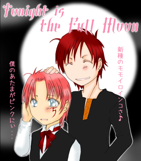 | 今回身も心も疲れ果てていたため、ワタシ的に最も楽な二人を描かせてもらいました(笑) ラビおにいちゃん、『紅白コンビ』だったアレン君の頭がピンクになったので、赤毛連盟組む気満々です(笑) このピンク頭、赤毛と言うよりはガンダムシリーズとかにいそうですけどね(笑) ガンダムシリーズって、通して観た事は一度もないのですが(笑) ちなみに、なんでこの子がピンク頭になったのかは、SS『Peeping Tom』をご覧ください♪ |