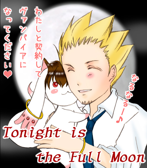 はじめは別ので描く予定だったんですが、ちょうど思いついた頃、ヴァンパイア話書いてたんで、ミラべぇとやたらノリのいいリーバー君になりましたよ(笑)