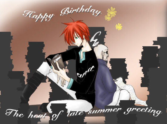 かいんさんにいただきました、ブックマンズのお誕生日絵&残暑見舞いです!