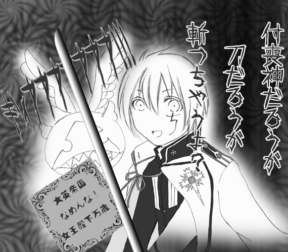 | 2016年エイプリルフールの下克上漫画でした★ 鶴丸ってクラウンクラウンっぽいな、と思ったのがきっかけでした。 衣装は適当に簡略化しているので、突っ込みは禁止です(笑) ・・・いいんだ、私、絵描きじゃないから(言い訳) にっかりの『元祖ツインテール』というのは、ツインテールの日に担当絵師さんが描いてらした絵が元ネタです(笑) ちなみににっかりの目の濃度が違う、って思われたかもしれませんが、左右の目の色が違うのは公式です(・▽・) ともあれ、アレン君は下克上返しがんばれ!!← |