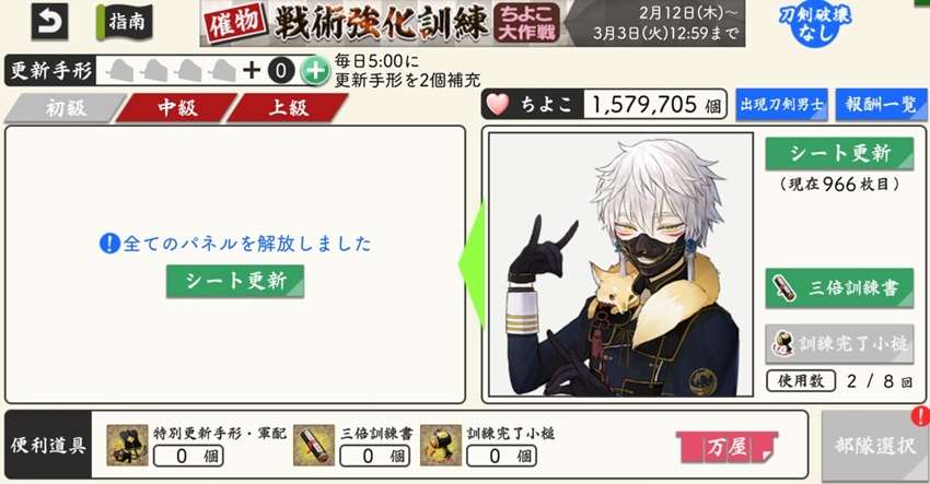 そんな本日のとうらぶさんは、ちよこラストスパート。