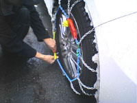 冬タイヤ規制が出てたので、真夜中のパーキングエリアで、チェーンを巻くところを見せてもらいましたよ。(写真は翌日の、チェーンを外すところ)