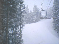 『高いねぇ・・・』と、林間をおどおどと、リフトに乗って行ってると、止まったよ、大雪の中。