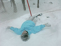 お調子者はすぐにまた調子に乗って、人の多いゲレンデに至ったのですが、林間コースと違い、人をよけつつ滑らなきゃいけないため、止まるに止まれず、雪煙を上げながら突っ込んだ先は、転落防止の網の中・・・・・・。
