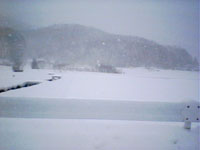 が、チェーンを巻いて再出発!と、車を走らせていると、あちこちで路肩に止めて、チェーンを巻いている人々が・・・。