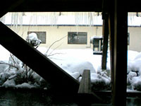 温泉には当然、露天風呂があるのですが、雪の降りしきる中での露天風呂は、それはそれは風情があって、よろしゅうございました