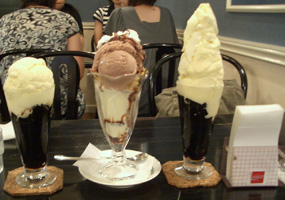 たまたまチャットに参加してくれていたちょっぴぃさんも、現地合流してくれることとなり、お昼にレモンステーキをいただき、温泉に行った後、巨大パフェとコーヒーゼリーをいただきましたよーん♪ |