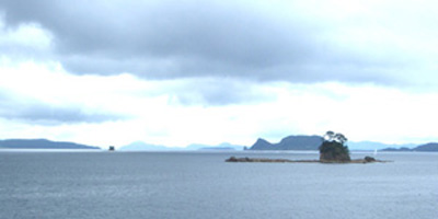 同じ場所から、ちょっと見る角度を変えると九十九島。 |