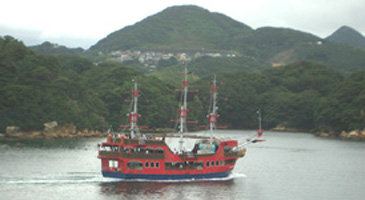 時折小雨がぱらつく中、遊覧船は行くよー♪ |