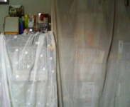 | 今日は大掃除だー!と、張り切っていたにもかかわらず、朝から風雨激しかったため、お部屋の掃除だけで終わりました(笑) そうか、本心ではやりたくなかったんだな、私。(をい) 風雨だけならともかく、時折雷も鳴りますよ(笑) 普通の音じゃなくて、『バチッ!!』って音がした時は、どっかの電線ショートしたのかと思ってちょうびびった; でも、普通に電気製品使えているので、構わずお掃除続けましたよ。 そして、ようやく目隠し用に買っていた布の設置が終わりました(笑) はぎれとして売っていた、やっすい布にひだをつけ、バレッタで止めてシェルフの裏の荷物隠し&本棚横のシェルフの目隠し。(本棚のは以前からつけてました。汚れてんじゃなくて生成りなの;) ![]() ってか、どれだけ目隠しすんの(笑) でも、ホコリよけのためにも、やっていると便利。 ところでこのお掃除をしている最中にですね、机の上に散らばっていたメモを発見したんですよ。 アレン君お誕生会のスケジュール表と、お誕生日SSのプロット、そして、年末年始更新予定表。 何気なく目を通していて、愕然としました。 『1日=新年TOP&ミランダお誕生日SS』 ・・・・・・・・・・・・しんねんとっぷ? な・・・なにそれ; 作ってないよ、くれはさん;;;←ミランダさんお誕生日絵は描いた。 そもそもまだ、SS終わってないよね・・・;>いい加減にしろ。 ・・・・・・・・・・・・・・・・・・・・・・・・・・・・・・・・・・・・・・・・・・・・・・・・・・・・・・・・・・・せいしんせいいどりょくします;;; あ、そだ。 使い回しですけど(ばらすなよ・・・)大晦日には恒例の彼が出てきます。 †本日の更新† ミランダお誕生日バナー 素材リンク追加 (Aglaia) |