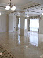 バルコニーに出たら鹿と鳩がいます。>鳩山さんちだから。 |