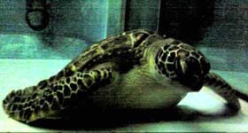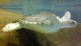 水中を飛び回る亀。 |