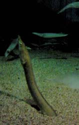 岩から顔出すウツボ。 |