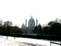 こんな絵を、どうして写真に撮れたかといえばまさに、カールス教会が修理中だったからです!