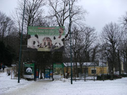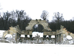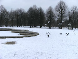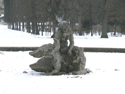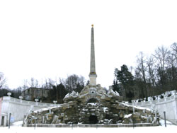 ・・・なんか合成写真のように見えますが、噴水の向うは雪の積もった丘、その上に建物、と言う現実です(笑)