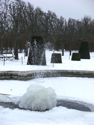 ここに唯一、水を出す噴水があるのですが、落ちた場所から凍って行って、噴水だか氷の塊だか何かわからないものに(笑)