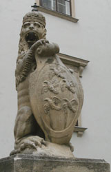 なんだか門らしきところにいるライオン。