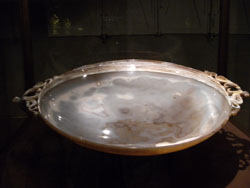 一枚の石から削りだされたお皿だそうですが、その石を磨いていくと、キリスト教的に重要な文字が浮かび上がったとか。