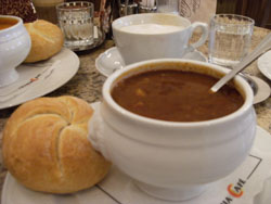 私はグラーシュという、ハッシュドビーフをスープにしたようなものを注文しました。