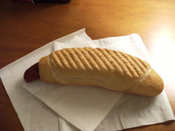 パンの先端を切って、中を削ってマスタードを入れて、ソーセージを突っ込むって言う、珍しいものでしたが、思った通り、おいしかったです