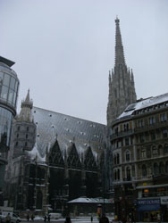 この日は朝から雪が降っていて、シュテファン寺院も雪化粧です。
