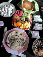 なのですよ(笑)今年は春分のあとの満月が3月30日だったので、今日がイースターなのです。 ネタを考えていたんですが、花見などの準備で忙しく、出来なかったので、今週中締め切りって形でいいですか?←意地でもやる心意気(笑) 遅くとも、来週月曜更新には間に合わせます。>遅っ!! 今日は寝かせてくれー;;; で、今日も花見でした!(笑) 今日は元職場の同僚会ですよ みんなでお持ちよりしてもらって、我が家でお花見です★ けんこさんのちらし寿司とるーるーのフルーツカクテル、にゅーのままが作ってくれたチーズケーキと、私のスノーボール&プリンケーキ。 今回、にゅーが結婚するので、プリンケーキにデザインしてみましたよ! これだとよく見えませんが、花に蝶を描いてます。 中国のシンボリックだったかな? 花は女性、蝶は男性で、花に蝶は結婚のお祝い、もしくは夫婦円満の意匠なんですよね。 ので、今回この絵柄になりました みんなにゅーの結婚式に呼ばれてるので、今日は主にその打ち合わせ的な話ばっかでしたよ(笑) あのちいさかったにゅーが、感無量だ!(笑) †本日の更新† D.Gray-man.Impressions 『第193夜』 (Kale_D.Gray−man) |