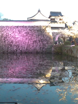 ちなみに、写真は城は城でも汐見櫓ね。 お城はもっと奥の方にあったそうです。>今はない。 ここ、すんごいコンパクトな池なんですけど、ここだけは睡蓮だったと思う。 他の大きな池は蓮なんですけどね。 桜もいいけど、夏の蓮の季節がいいのですよ、ここは。 蓮の話になると、下諏訪さんの方が詳しいかな(笑) そんで家に帰って、部屋に入って驚いた!! カーテン、レースまであけっぱだった!!( ■ ;; ヤバイ、昼の間、隣のアパートから私の荒れ果てた部屋が丸見えだった;;; 朝起きてから、しばらく花見してました(^^;) |