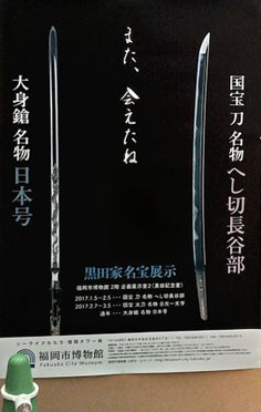| 今日は、寒いけど晴れていたので、自転車のメンテに行くついでに福岡市博物館に行ってきましたよ! 先週、こんのすけに会いに行った時は長谷部君目当ての列がすごくて、普通に2時間待ちコースだったんですが、今日はすごく空いてたよ! すんなり入って、誰も居ない間に長谷部君記念撮影♪ ![]() ・・・なんか、チケット売り場の職員さんに、顔覚えられたっぽい。 えぇ、まぁ・・・刀剣展示期間にはいつも行ってますからね。 『あー!やっぱり来たー!www』って顔されましたwwww えぇ、私です。(真顔) ちなみにこの刀置きは、前回の公開の際に『役立ててください』って頂いた寄付金から購入したそうです。 ・・・審神者、パネェ・・・! 来月は、また国宝の日光一文字が公開されるので、見に行きますよ! 城井兼光も!! 城井兼光もぜひ!!!! ってか、実装してください!!!!← 一緒にパネルと描き下ろしもまたゆっくりと撮影して、レプリカ触りまくって(笑)から自転車の調整に行きましたよ。 ハンドルが高すぎて、坂道が登れなくてさ! あんまり大変なんで、ハンドル下げてもらってちゃんと乗れるようにしてもらいました。 これで明日は自転車通勤楽になるぞ! 帰ったら、昨日から録画消費していた逃げ恥最終回まで見終わりました! これは大変面白いですな! 羽生くんのガチな恋ダンスが見たくなりました(笑)>なぜそっちに行く。 火曜はいよいよ刀ステライビュですぞ!! ってことで、先週は刀ステEDでした(笑) 楽しみすぎて・・・晴れたよね(笑)>またwwww 月曜から雨のはずだったのに、なんでwwww |