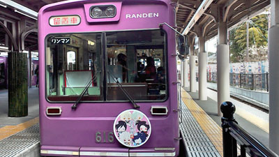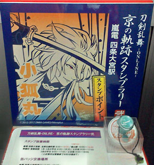 一緒に入れようとすると、身長差すごくて入りきれません(笑) お前達・・・打刀のはず・・・! ここは審神者の他にも、新選組ファンが来る場所なので、伏見以外では一番人数が多かったかもしれない。 ![]() 壬生寺を出たら嵐電の四条大宮駅に行かなきゃなんですが・・・どこだ; ここでも、通りすがりのおばあさまに道を尋ねて、しかも『行く方向同じだから』って、嵐電の駅を教えてもらいました! 京都の人・・・優しい・・・! そう言えば、宿に行く時も通りすがりの男性に道を尋ねたんだった。 ありがとうございます・・・! 無事に駅に着いて、スタンプラリー開始ですよ! ![]() 小狐のスタンプ台、可愛い やっぱり、うちの狐が一番可愛いと思うの!! ここにはジジィもいますよ! ![]() 駅の券売機・・・と言うか、伊藤園の自販機の横にいて、そこまでお茶好き主張かと(笑) むしろ、伊藤園の宣伝しているのかと(笑) お小遣いもらってください(笑) ってことで、先にスタンプラリーやっちゃおうってことで開始! 嵐山駅で刀剣仕様の嵐電と、岩&今コンビ! ![]() ![]() ![]()